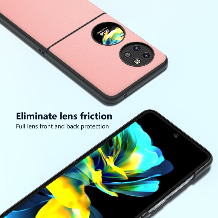 Funda para Huawei P60 Pocket Abeel con Borde Negro Ondulado de Cuero Genuino (Rosa)