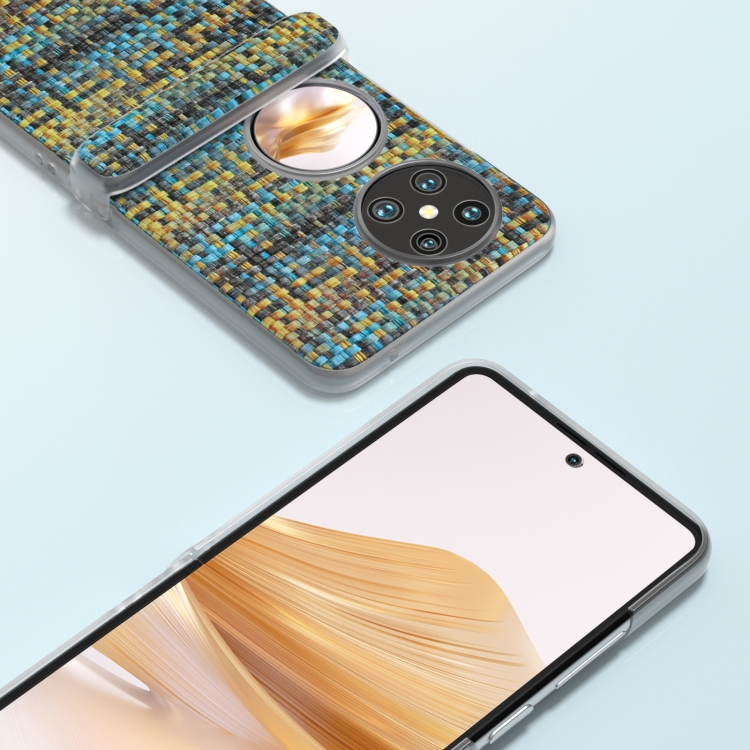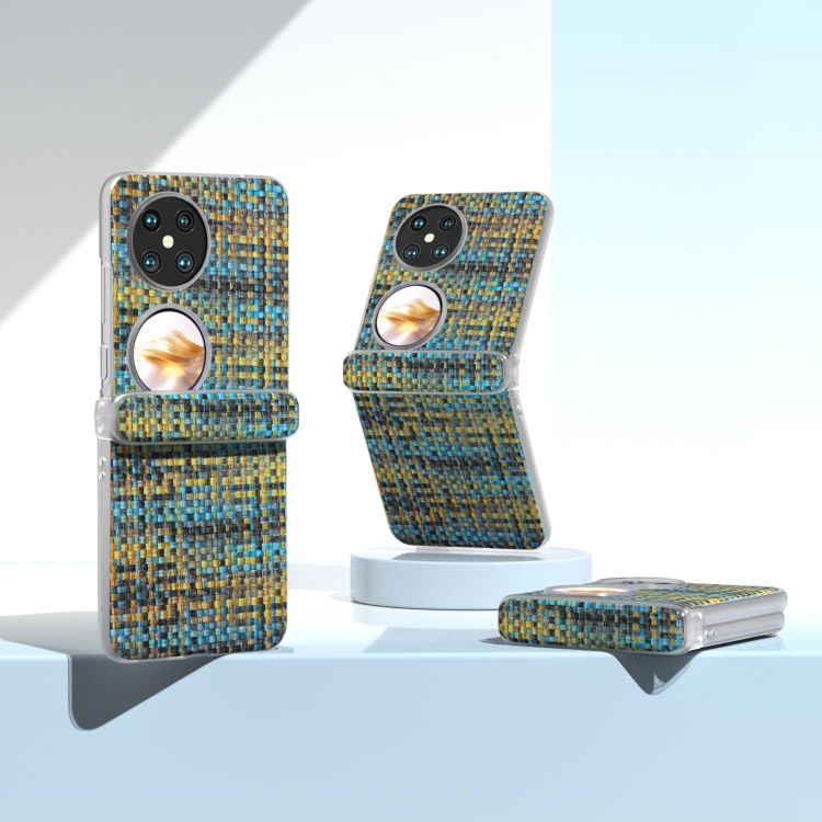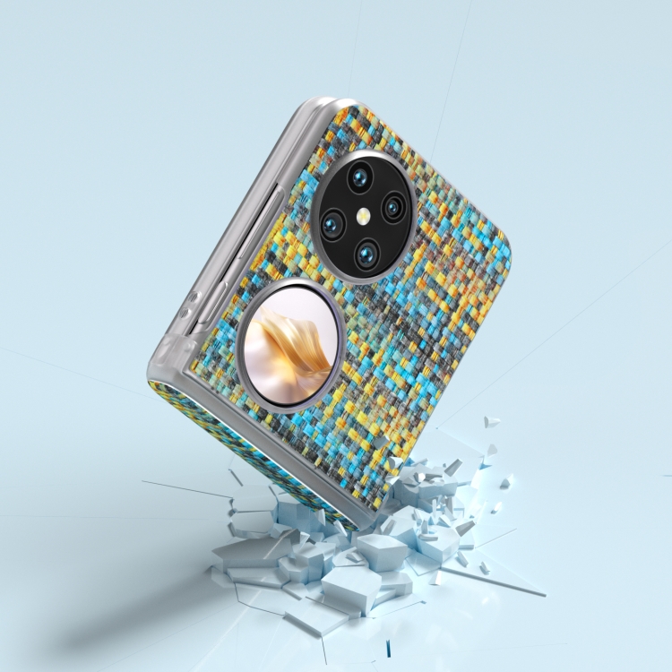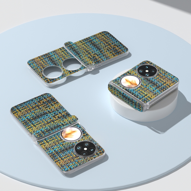 Caja 3 en 1 para Huawei Pocket 2 con Marco Translúcido Esmerilado y Textura Rómbica (Dorado)