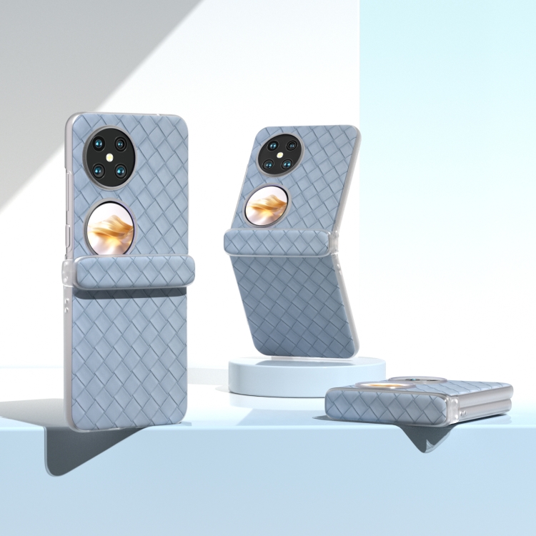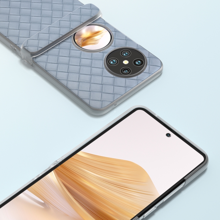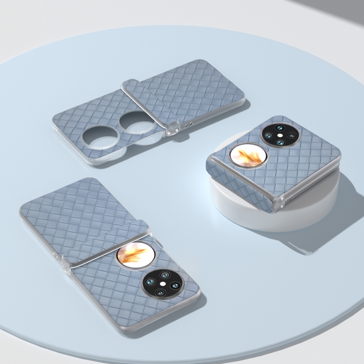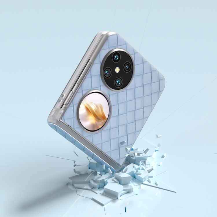 Funda 3 en 1 para Huawei Pocket 2 de PU con Marco Translúcido Esmerilado y Textura Tejida (Azul Claro)