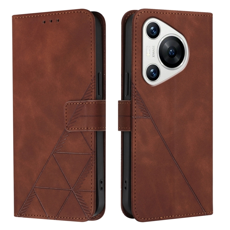 Funda de Cuero para Huawei Pura 70 Crossbody con Tapa en Relieve 3D (Marrón)