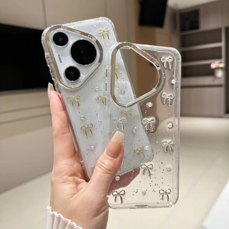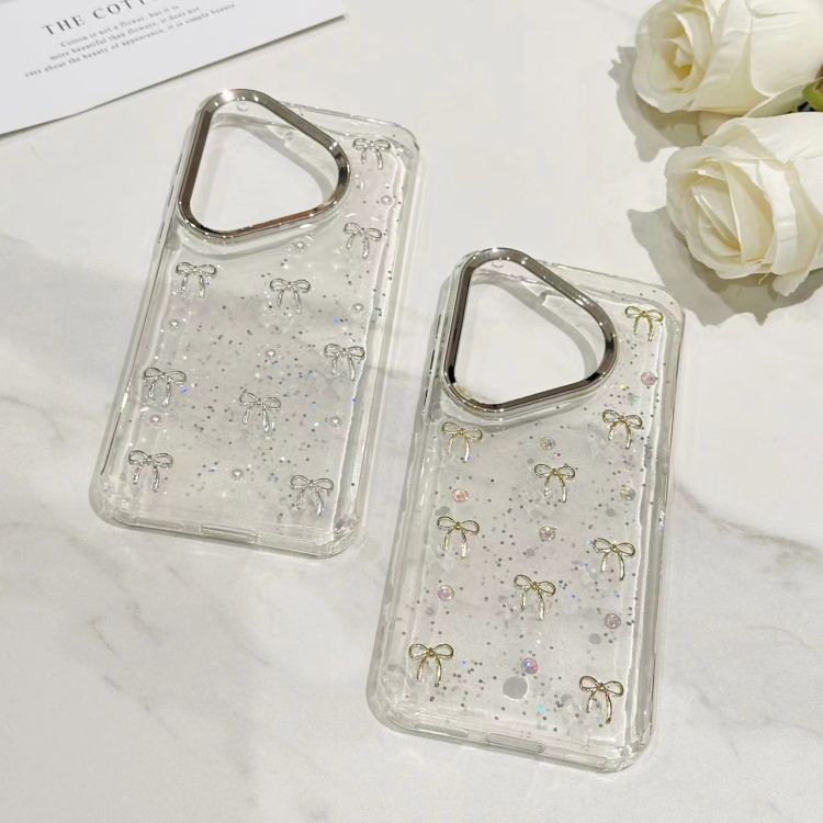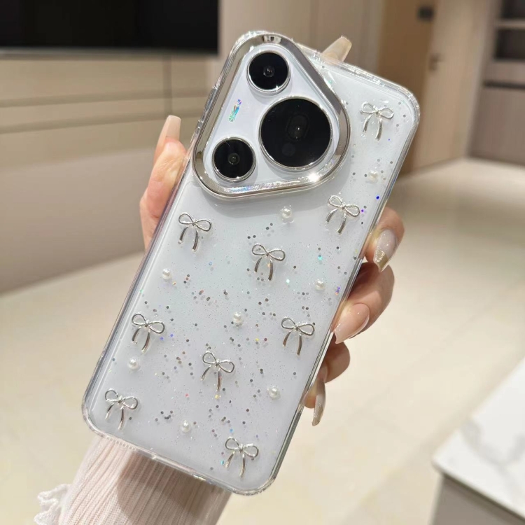 Estuche TPU Huawei Pura 70 con Lazo Pequeño (Arco Plateado)