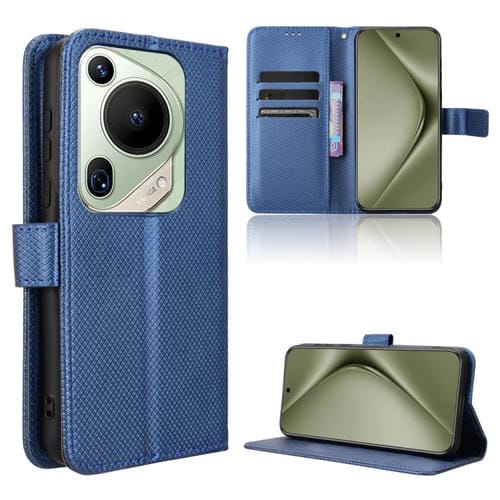 - 1x Funda de Cuero para Huawei Pura 70 con Textura de Diamante Ultra (Azul)