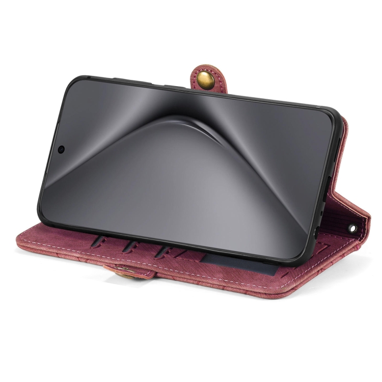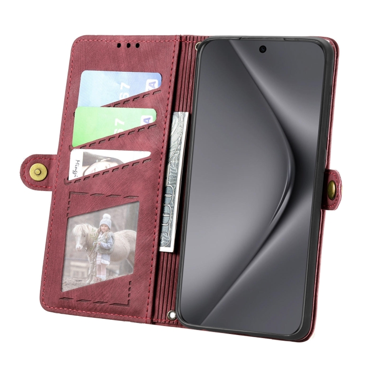 - 1x Funda de Cuero para Huawei Pura 70 con Hebilla Lateral y Billetera con Cremallera (Rojo)