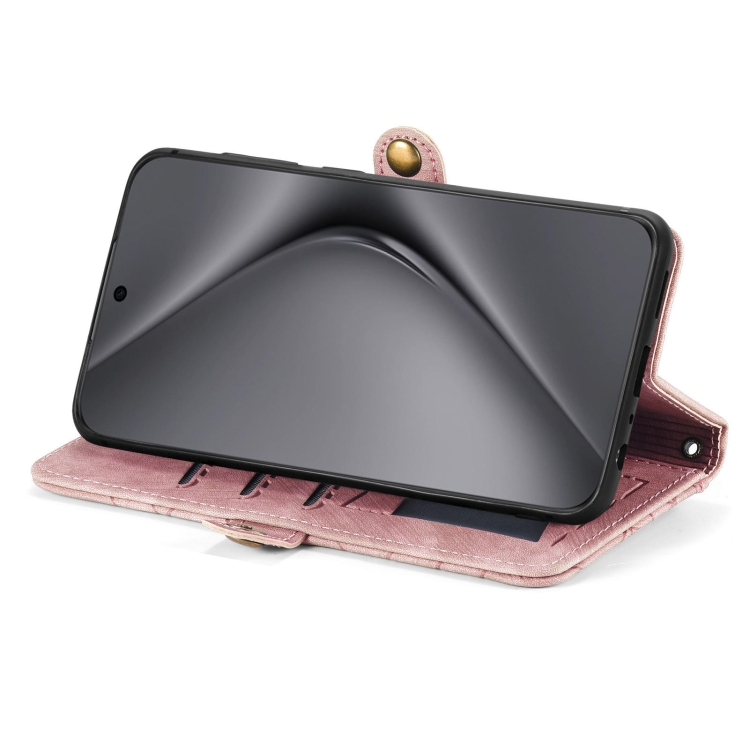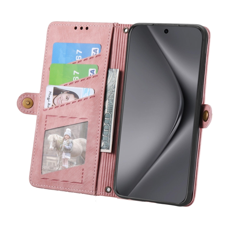 - 1x Funda de Cuero para Huawei Pura 70 con Hebilla Lateral y Billetera con Cremallera (Rosa)