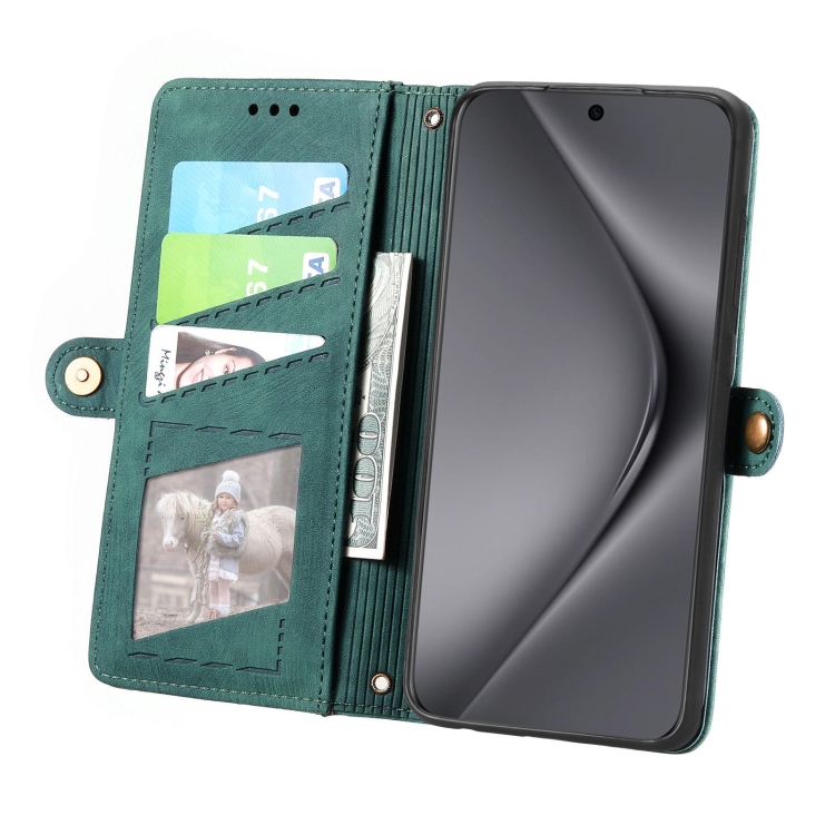 - 1x Funda de Cuero para Huawei Pura 70 con Hebilla Lateral y Billetera con Cremallera (Verde)