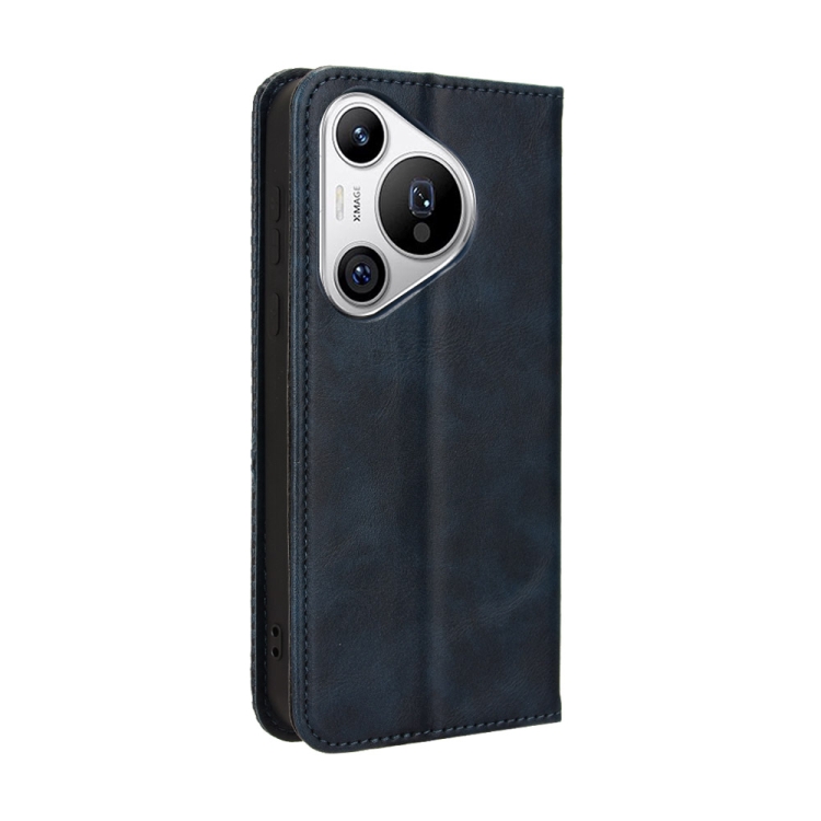 Funda para Huawei Pura 70 de Cuero con Textura Retro y Hebilla Magnética (Azul)