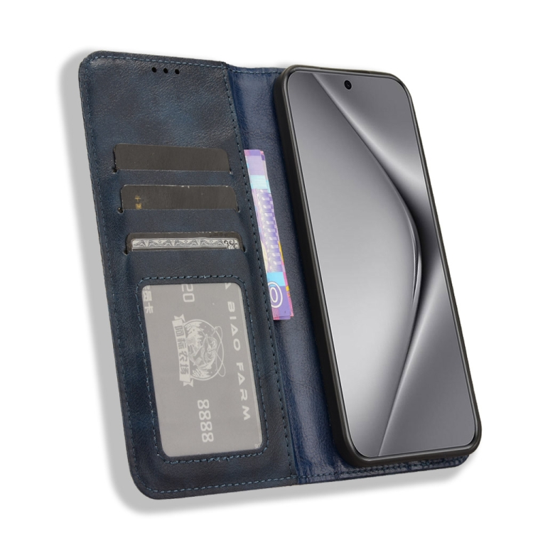• 1x Funda para Huawei Pura 70 de Cuero con Textura Retro y Hebilla Magnética (Azul)