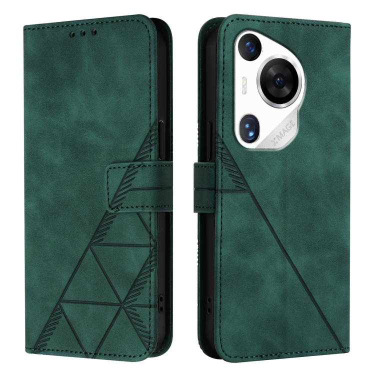 Funda de Cuero para Huawei Pura 70 Pro Crossbody con Tapa en Relieve 3D (Verde Oscuro)