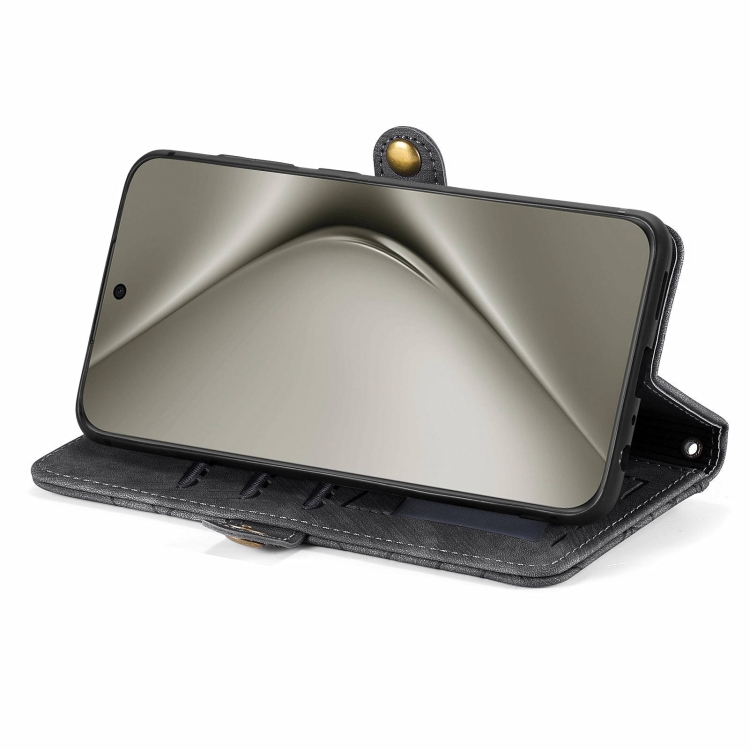 - 1x Funda de Cuero para Huawei Pura 70 Pro con Hebilla Lateral y Billetera con Cremallera (Negro)