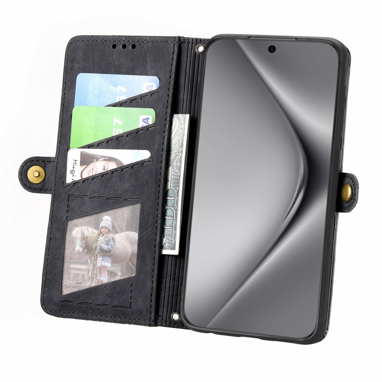 - 1x Funda de Cuero para Huawei Pura 70 Pro+ con Hebilla Lateral y Billetera con Cremallera (Negro)