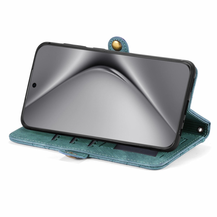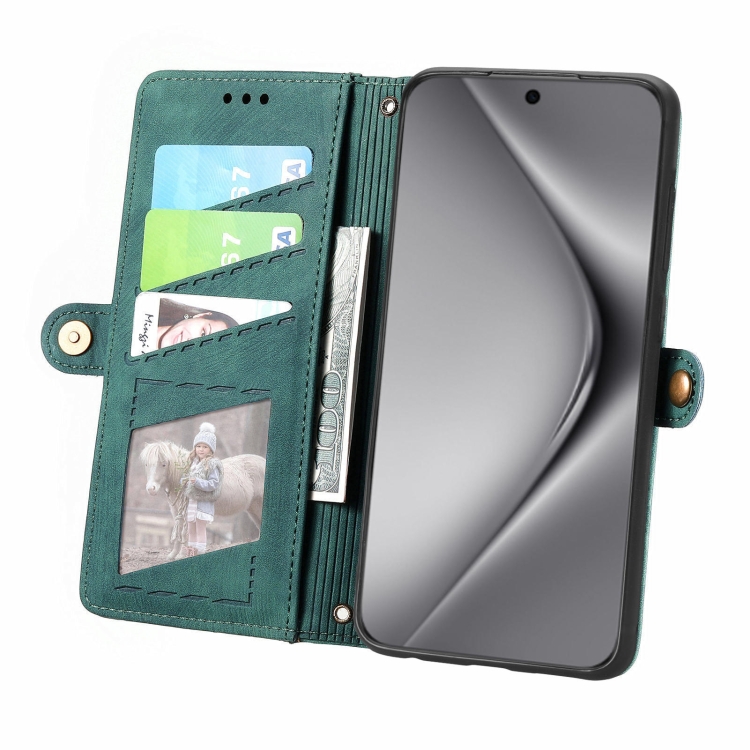 - 1x Funda para Huawei Pura 70 Pro+ Cuero con Hebilla Lateral y Billetera con Cremallera Geométrica (Verde)