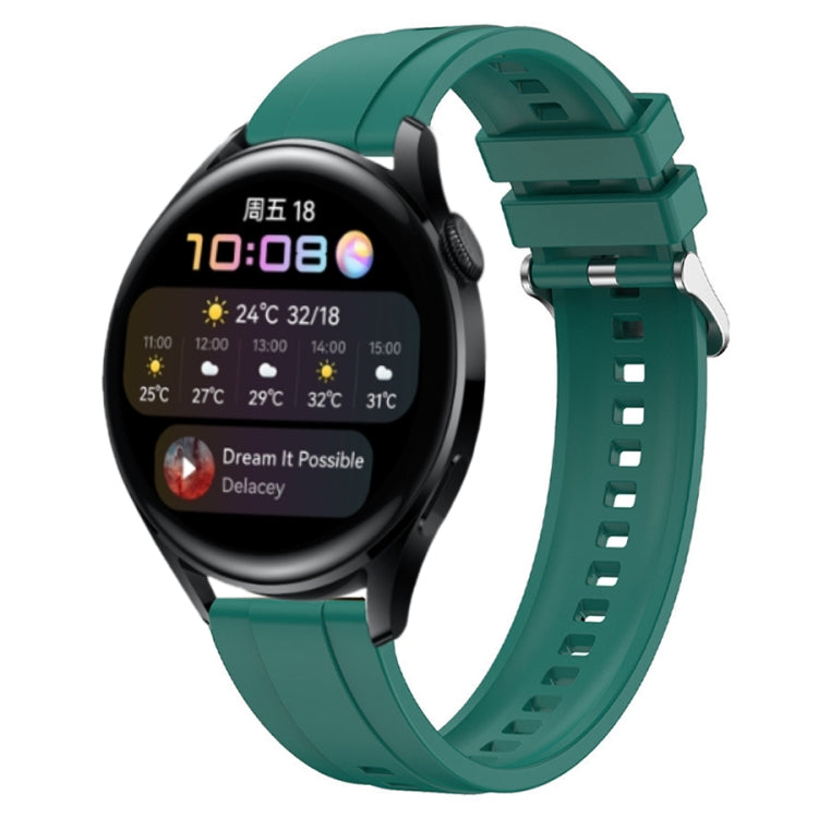 Correa de Silicona para Huawei Watch 3/3 Pro con Patrón de Neumático y Hebilla Plateada (Verde Oscuro)
