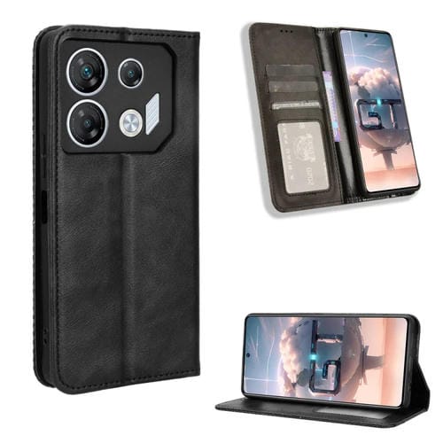 Funda de Cuero con Hebilla Magnética para Infinix Gt 10 Pro con Textura Retro (Negro)
