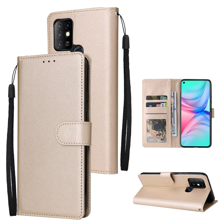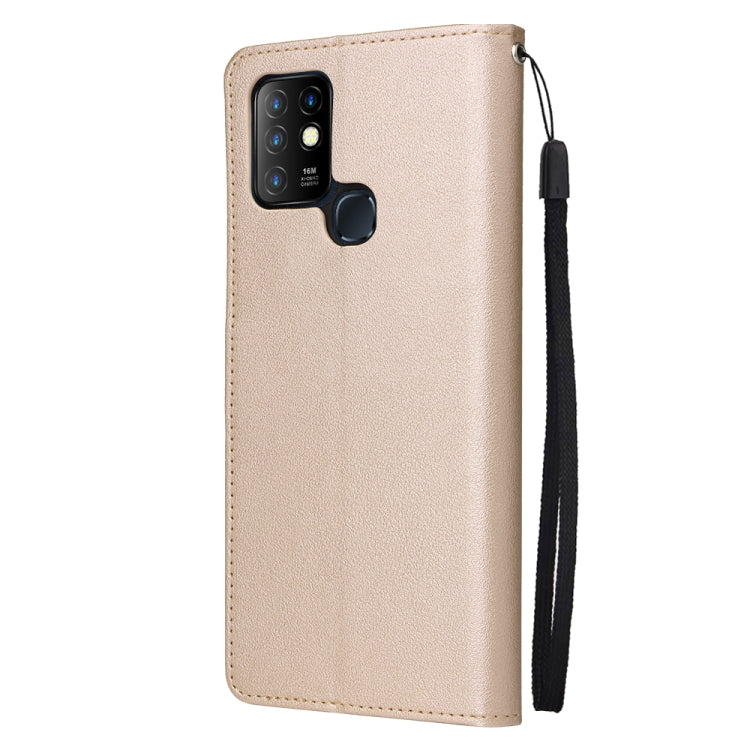 Estuche de Cuero para Infinix Hot 10 con Tapa Horizontal y 3 Ranuras para Tarjetas (Oro)