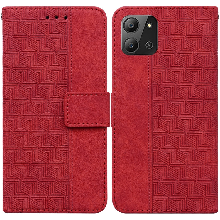 Funda de Cuero para Infinix Hot 11 2022 con Relieve Geométrico (Rojo)