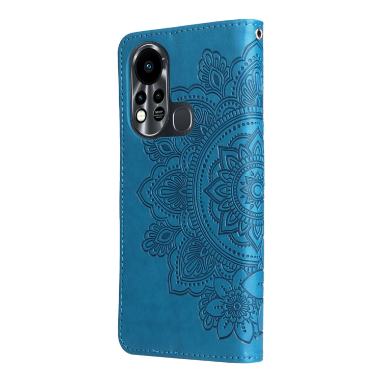 Funda Flip Leather para Infinix Hot 11S Flores de 7 Pétalos (Azul)