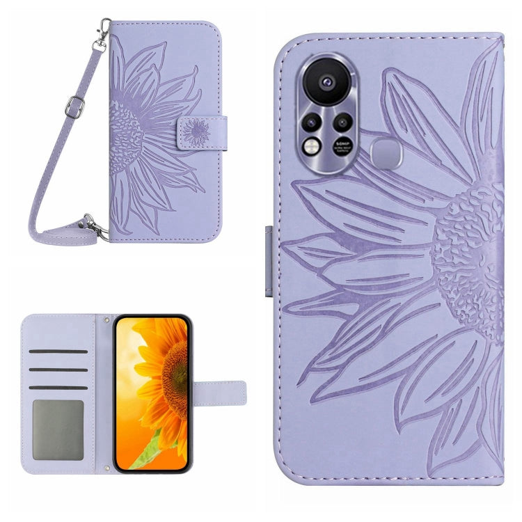 Funda de Cuero Flip para Infinix Hot 11S Skin Feel con Cordón y Patrón Sun Flower (Púrpura)