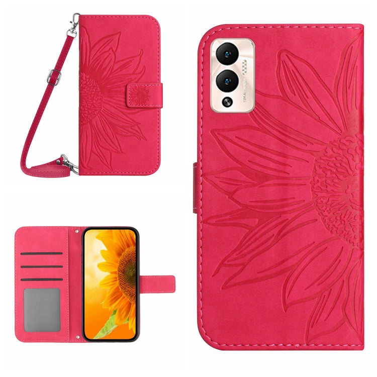 Funda de Cuero Flip con Cordón para Infinix Hot 12 Play Skin Feel Sun Flower (Rose Red)