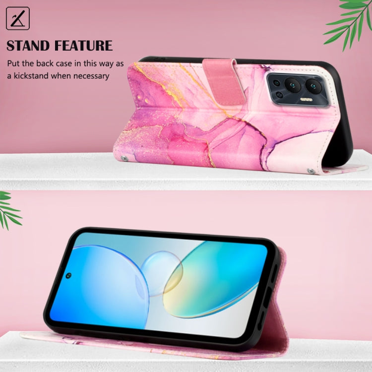 Funda de Teléfono Infinix Hot 12 X6817 Pt003 con Tapa de Cuero y Patrón de Mármol (Oro Rosa Púrpura)