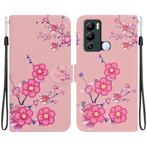 Funda de Cuero para Infinix Hot 12I con Dibujo Coloreado y Textura de Cristal (Flores de Cerezo)
