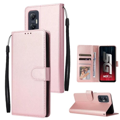 Funda de Cuero Multifuncional para Infinix Hot 20 5G con 3 Ranuras para Tarjetas (Oro Rosa)