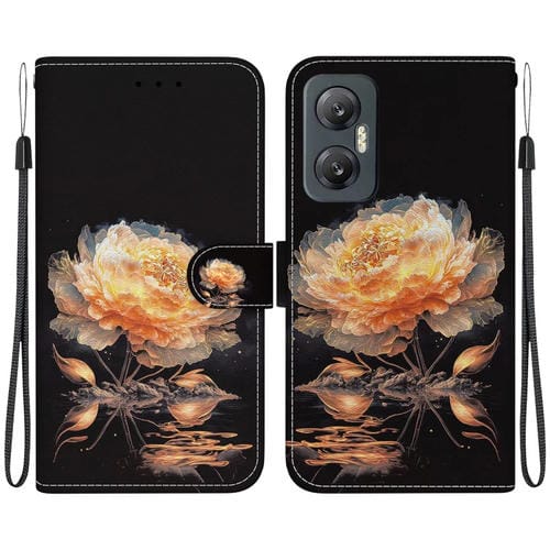Funda de Cuero para Infinix Hot 20 5G con Dibujo Coloreado y Textura de Cristal (Peonía Dorada)