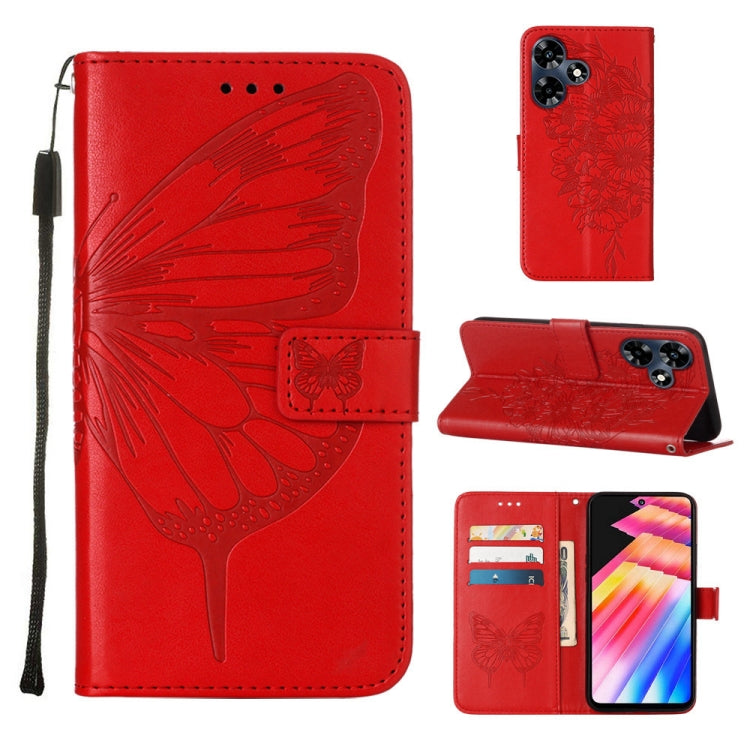 Estuche para Infinix Hot 30 4G X6831 de Cuero con Mariposa en Relieve (Rojo)