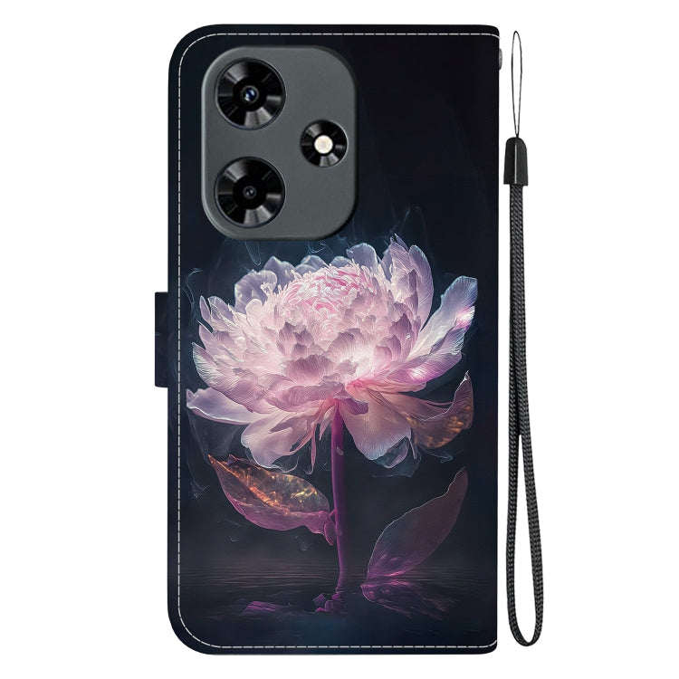Estuche de Cuero para Infinix Hot 30 con Dibujo Coloreado y Textura de Cristal (Peonía Púrpura)