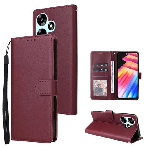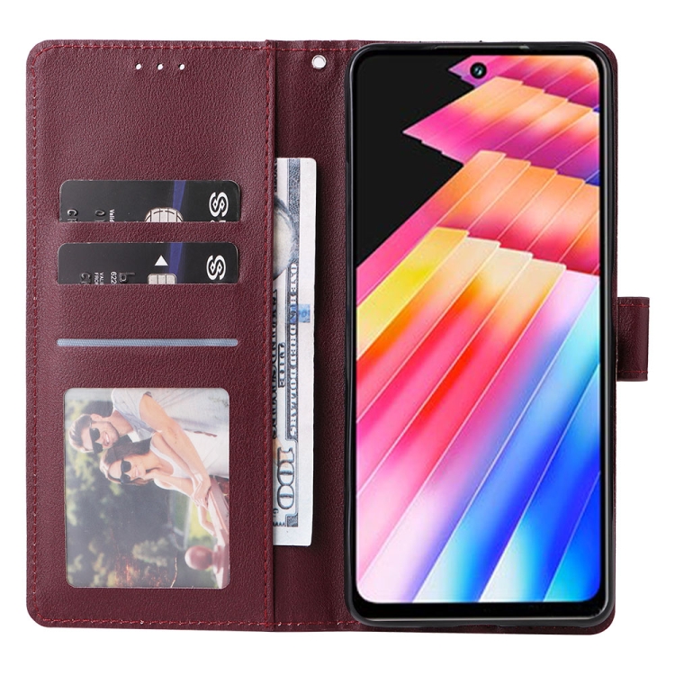 Funda para Infinix Hot 30 de Cuero Multifuncional con 3 Ranuras para Tarjetas (Rojo Vino)