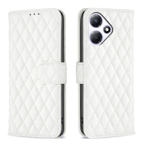 Funda de Cuero con Tapa para Infinix Hot 30 Play NFC Wallet Diamond Lattice (Blanco)