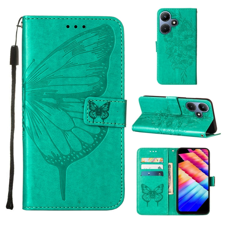 Estuche para Teléfono Infinix Hot 30I X669 Cuero Mariposa En Relieve (Verde)