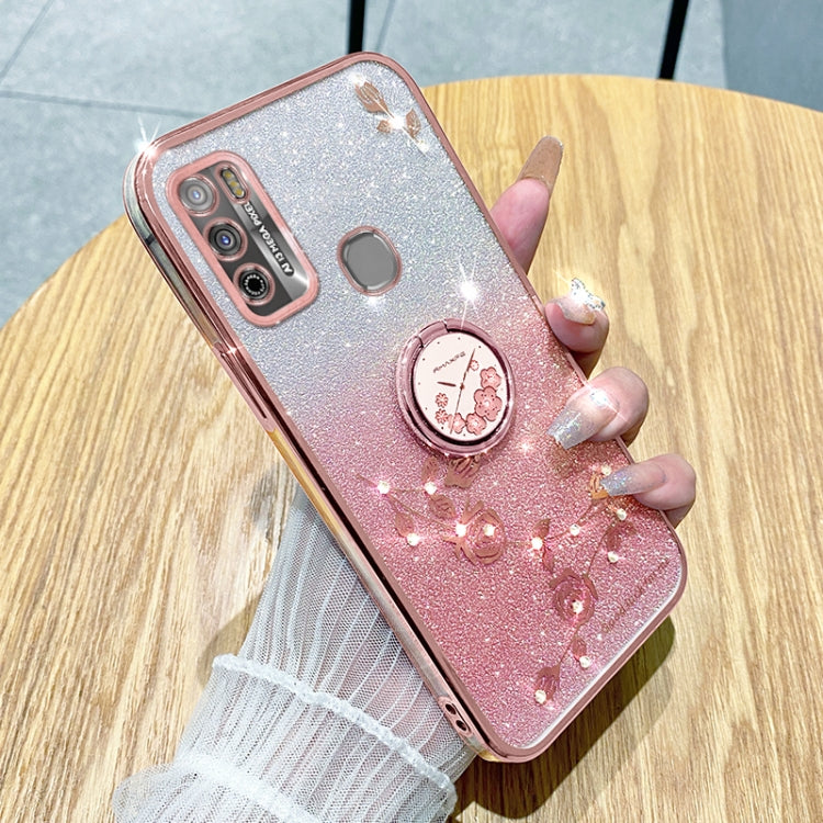 Estuche para Infinix Hot 9 Play con Anillo Flor Inmortal y Brillo Degradado (Rosa)