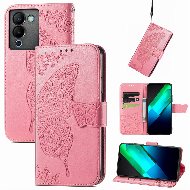 Estuche para Infinix Note 12 G96 Butterfly Love Flower de Cuero en Relieve (Rosa)