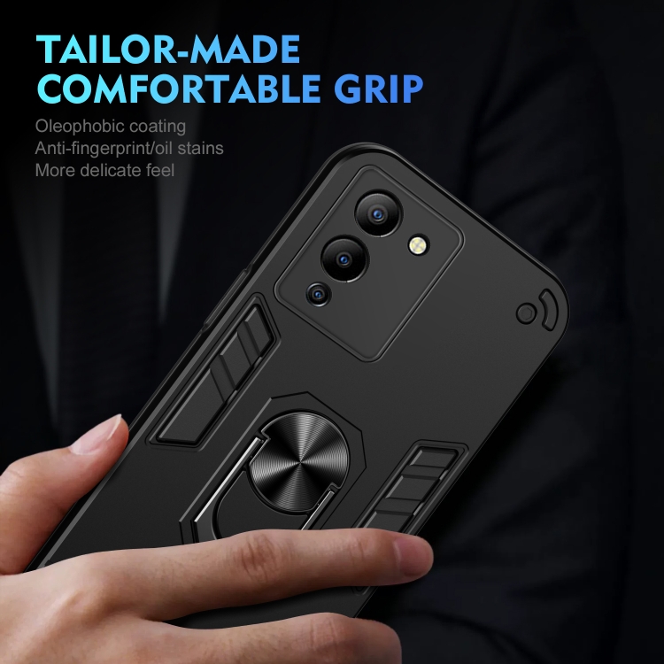 Funda para Infinix Note 12 G96 con Soporte de Anillo de Metal a Prueba de Golpes (Negro)