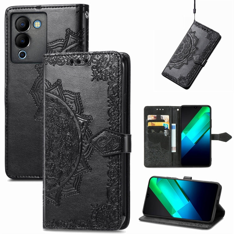 Funda de Cuero En Relieve Mandala Flower para Infinix Note 12 G96 (Negro)