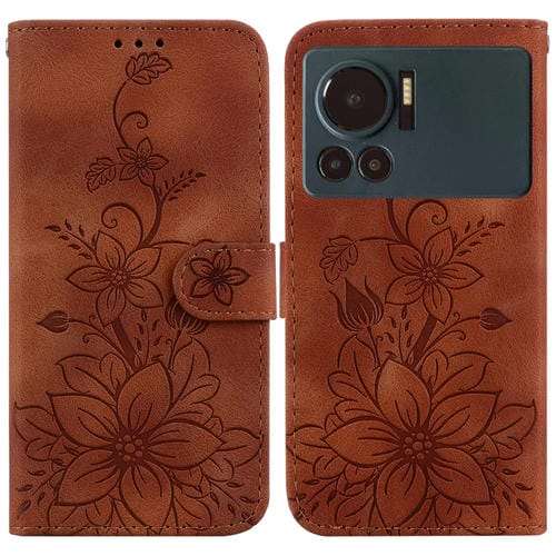 Estuche para Teléfono Infinix Note 12 Vip Lily de Cuero en Relieve (Marrón)