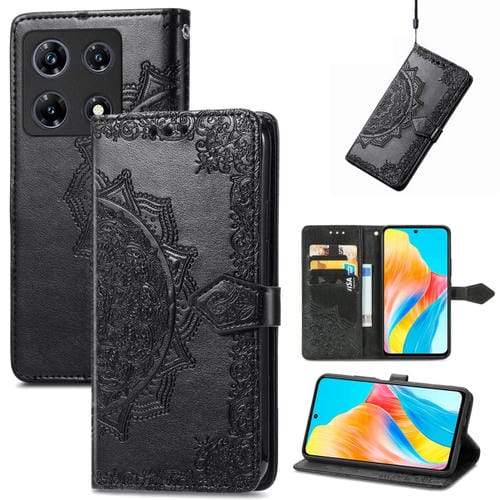 Funda de Teléfono Infinix Note 30 Pro Cuero con Relieve Flor de Mandala (Negro)
