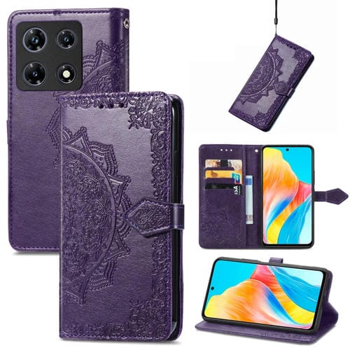 Funda de Cuero para Infinix Note 30 Pro con Relieve de Flores Mandala (Púrpura)