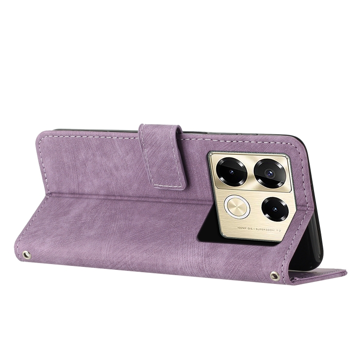 Funda de Cuero para Infinix Note 40 Pro 4G/5G con Patrón de Rayas y Cordón (Púrpura)