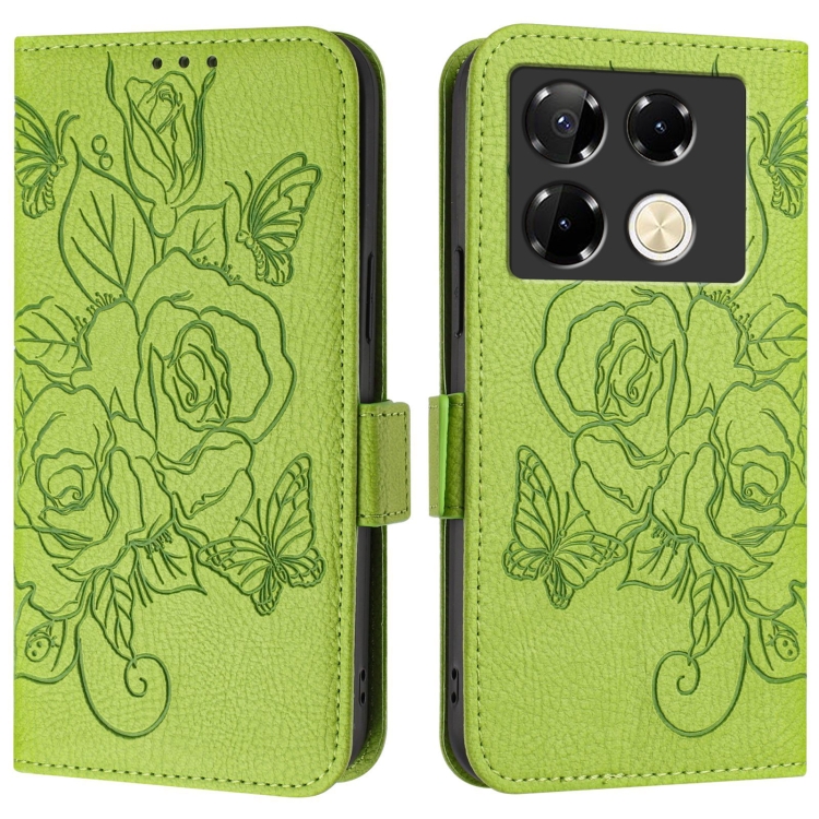 Funda de Cuero Antirrobo RFID para Infinix Note 40 Pro 4G con Relieve (Verde)