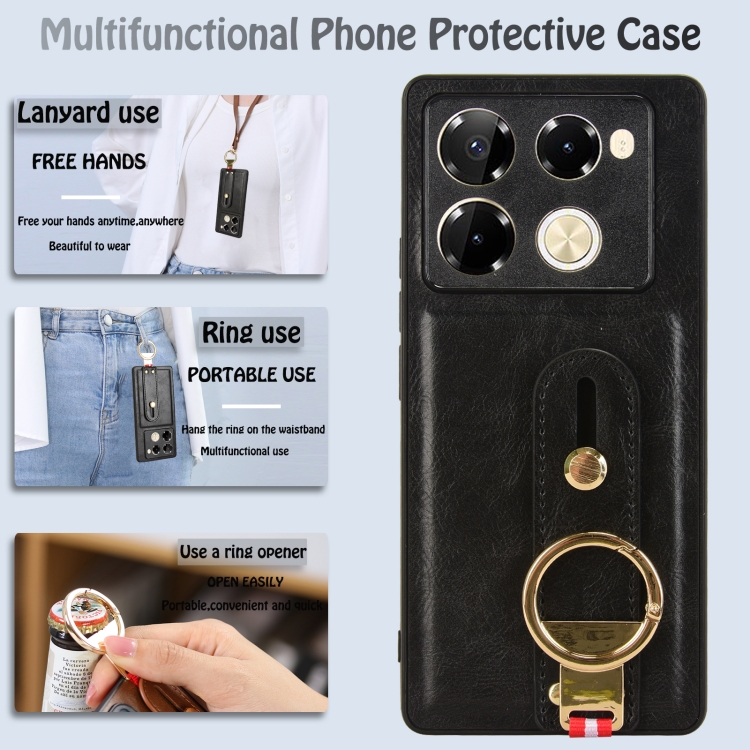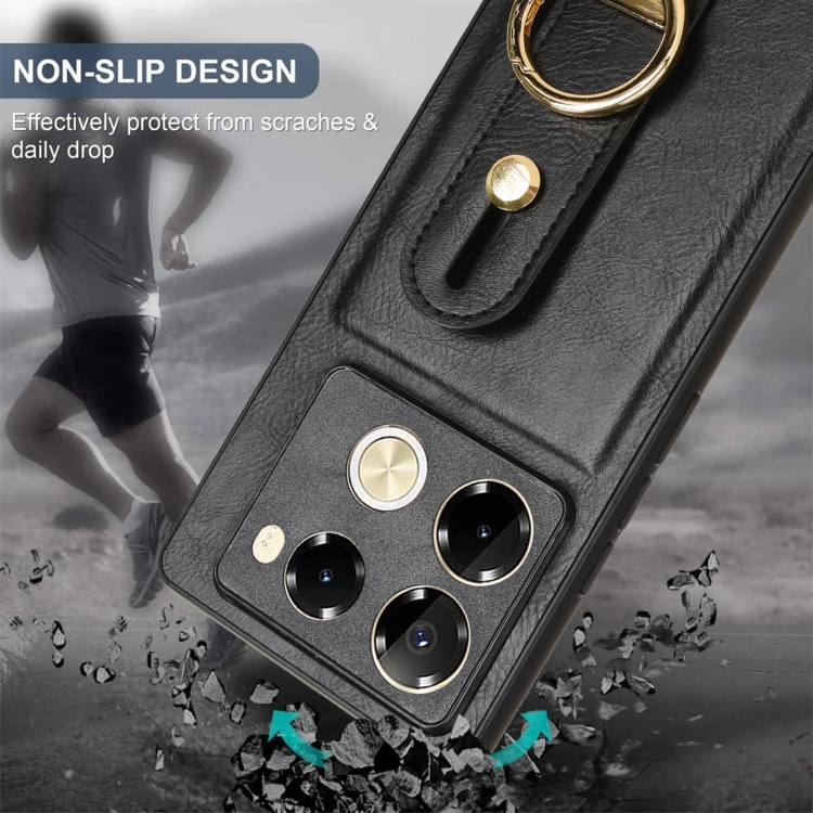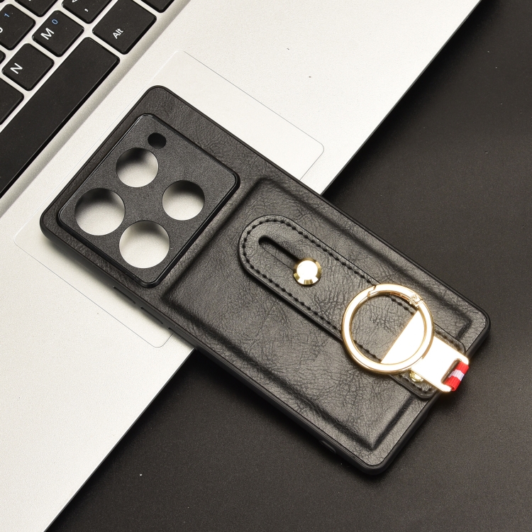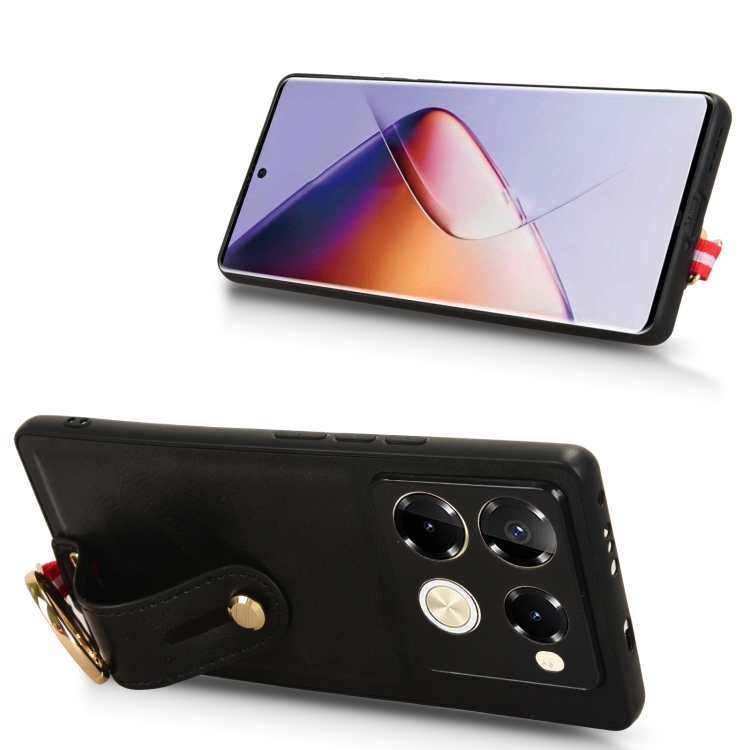Funda Trasera de Cuero para Infinix Note 40 Pro 5G X6851 con Pulsera (Negro)