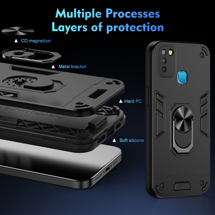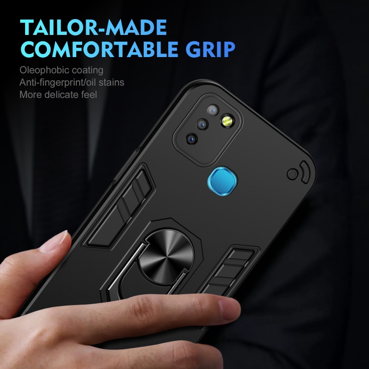 Funda para Infinix Smart 5 con Soporte de Anillo de Metal a Prueba de Golpes (Negro)