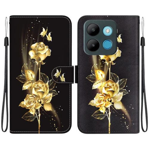 Funda de Cuero para Infinix Smart 7 Africa con Dibujo Coloreado Mariposa Dorada Rosa