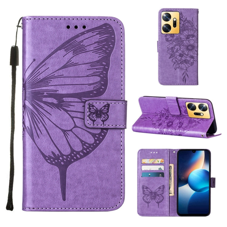 Estuche para Infinix Zero 20 X6821 de Cuero con Mariposa en Relieve (Púrpura Claro)