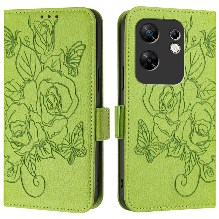 Funda de Cuero Antirrobo RFID para Infinix Zero 30 4G con Relieve (Verde)