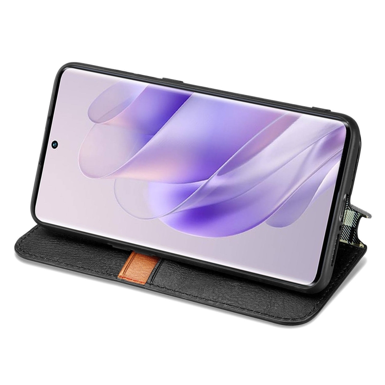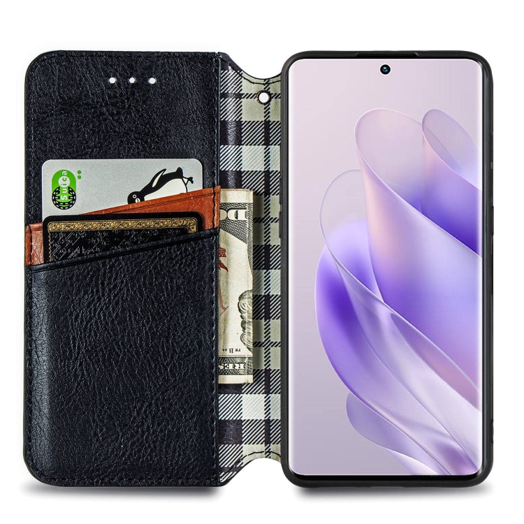 Funda de Cuero Magnético Prensado para Infinix Zero 30 5G Cubic Grid (Negro)