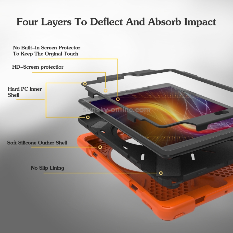 Funda para iPad 9,7 Pulgadas (2017) PC Rotación 360 Grados Silicona Soporte Correa (Naranja)