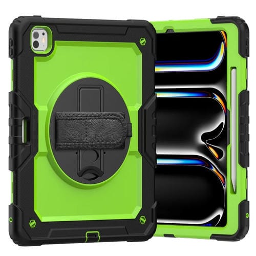 Funda híbrida de silicona para iPad Pro 13 2024 con correa para el hombro (Amarillo Verde + Negro)