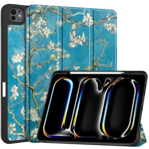 Funda para Tableta iPad Pro 13 2024 Cuero Inteligente con Soporte de 3 Pliegues y Bandeja para Bolígrafo (Flor de Albaricoque)