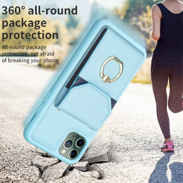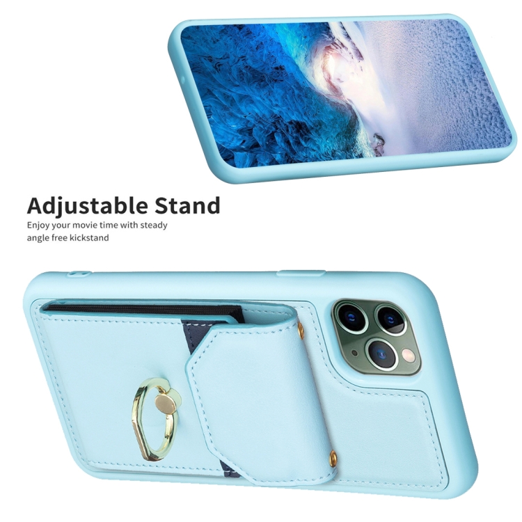 Funda para teléfono Bf29 iPhone 11 con soporte para anillo y bolsa para tarjeta de órgano (Azul)